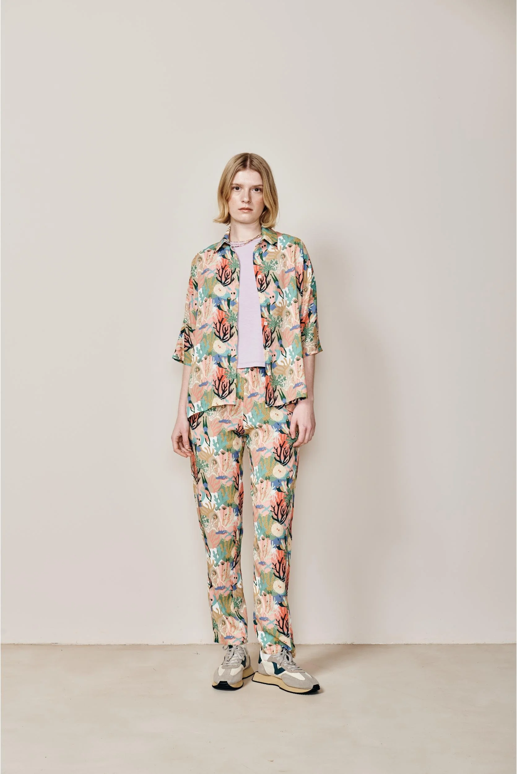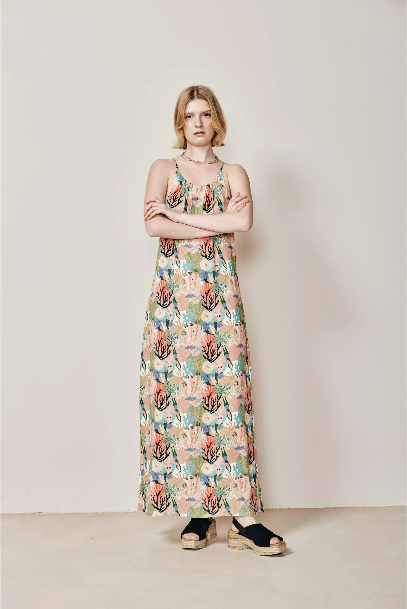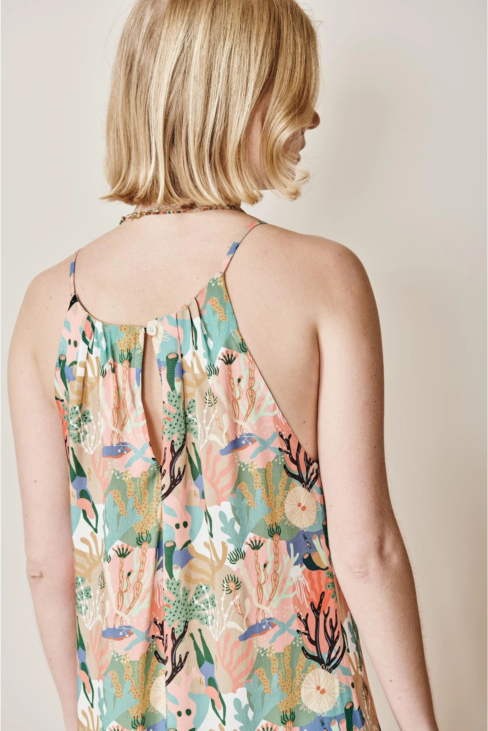 Nadadora is a Seamless pattern design inspired by the sea underworld, a figurative approach using manual and digital techniques. Synthetized and bold shapes with textured details in a pastel theme with saturated accents. A swim into the wonders of the summer vacation adventures.
